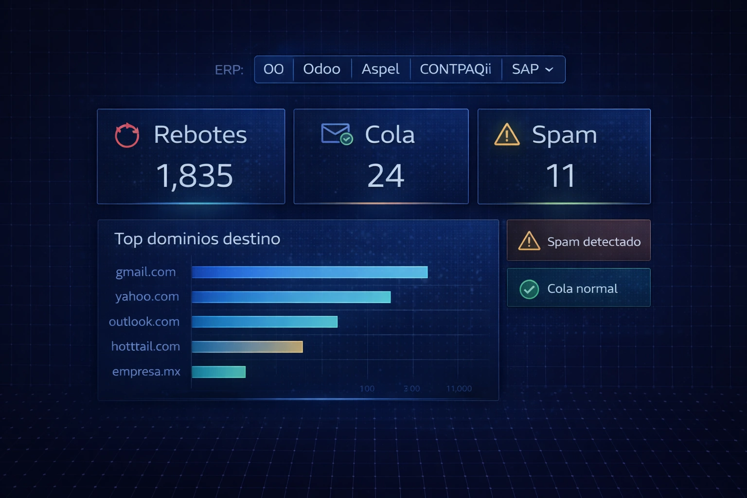 Proveedor de Correo para ERP Empresarial con monitoreo de colas