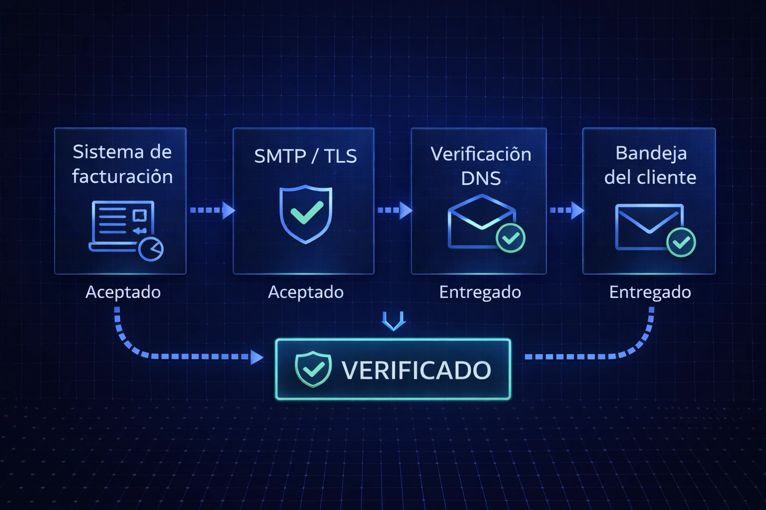 Porque en facturación importa la entrega estable y el diagnóstico. Es decir, SMTP con TLS, SPF/DKIM/DMARC y soporte con evidencia cuando hay rebotes.