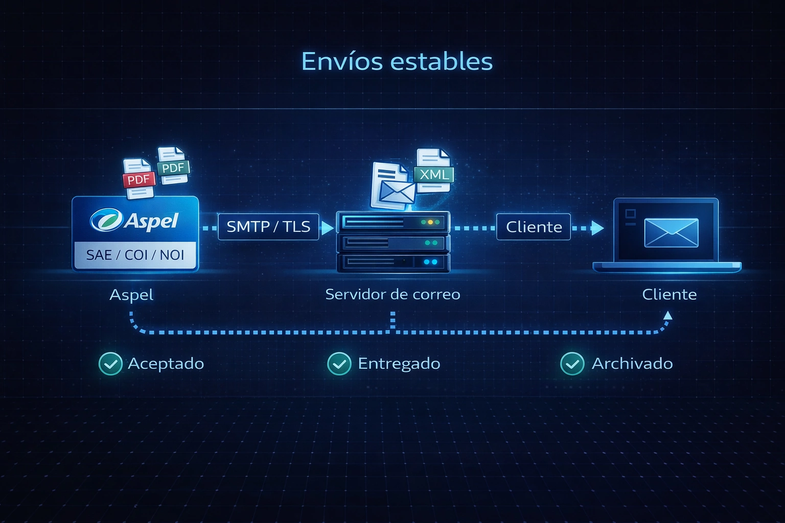 Ahora bien, el problema más común no es que el sistema de facturación no genere el CFDI, sino que el correo tenga intermitencias: rebotes, spam, adjuntos bloqueados o límites de envío. Por eso, un servicio de correo para facturación electrónica debe garantizar tres cosas: envío seguro, entrega confiable y diagnóstico con evidencia.